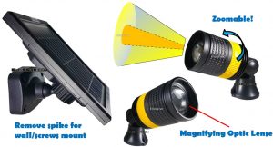 Eliossive Twin lamp series provide Zoomable lighting range to maximize brightness effects. Conventional solar spotlight only gives out around 50-100 Lumens, but our Twin Series produce 220 Lumens combine! On top of that, we make it last through out the night (12hrs); Even after 6hrs we only dim it to 50%, which still stand at 110 Lumens! Generic product in the market can ‘t provide such long endurance and require you to dim it to 20% just to last long enough for the night.